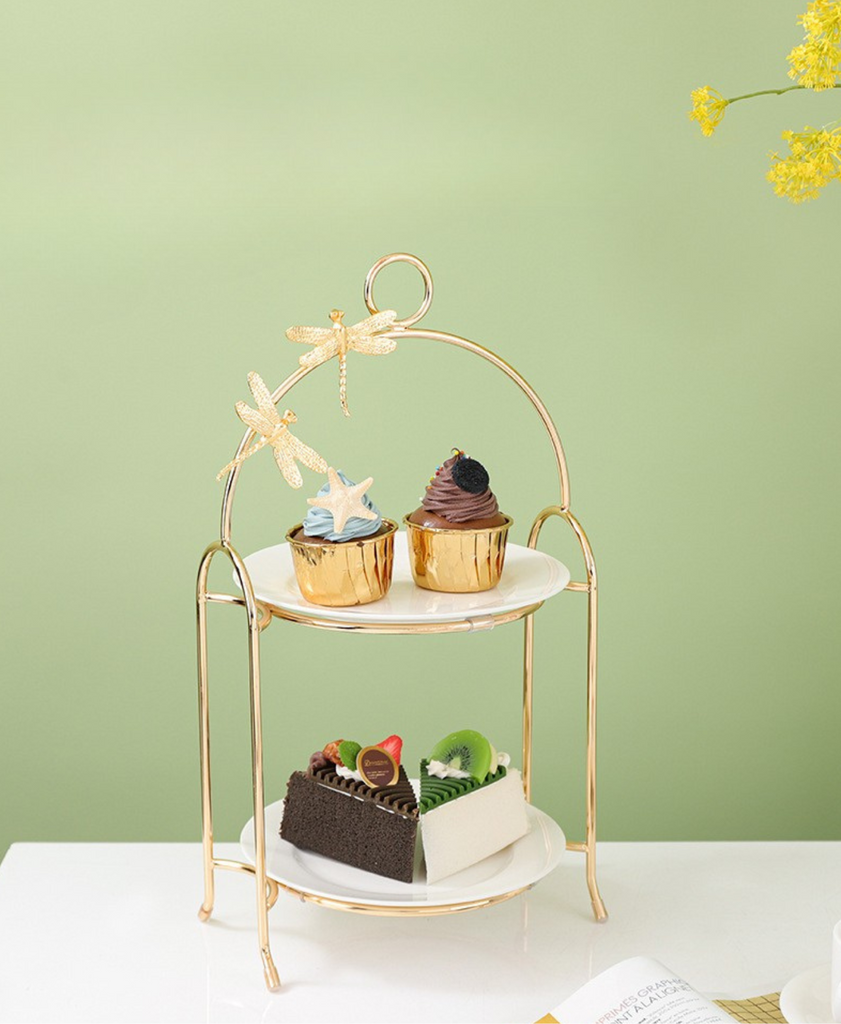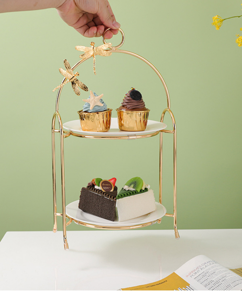 Two-Tier Golden Dragonfly Snack & Dessert Plate