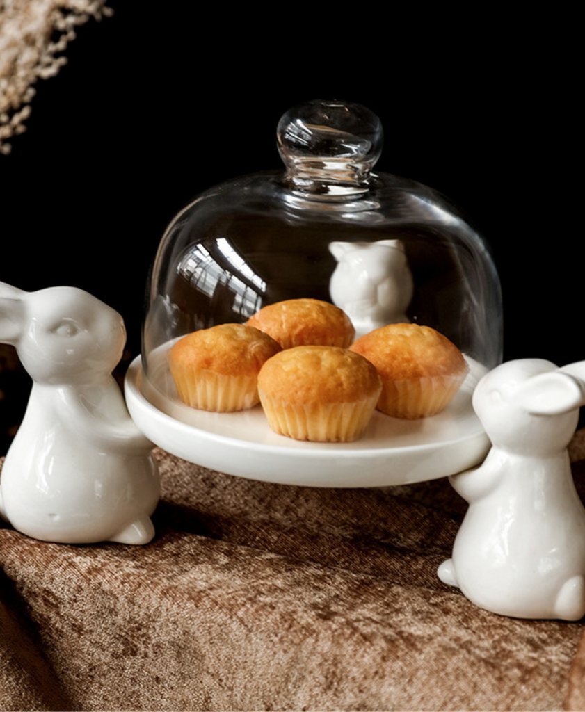 Rotating Rustic Wooden Cake Display with Glass Lid
