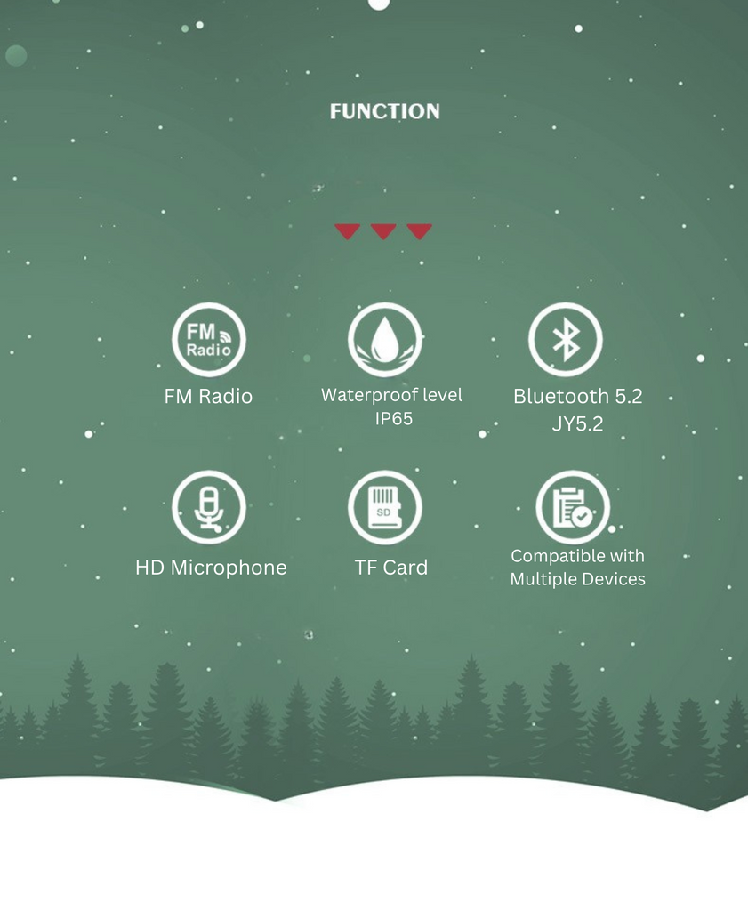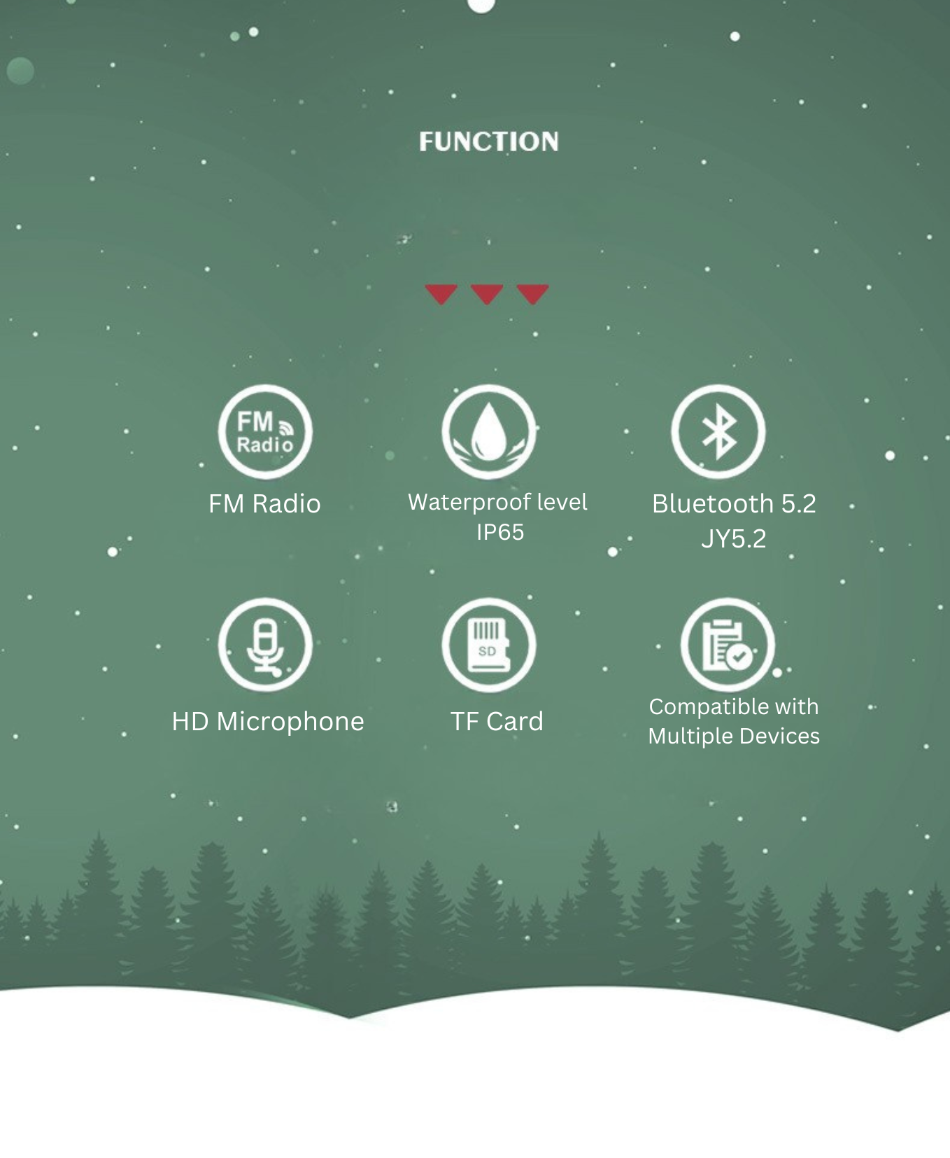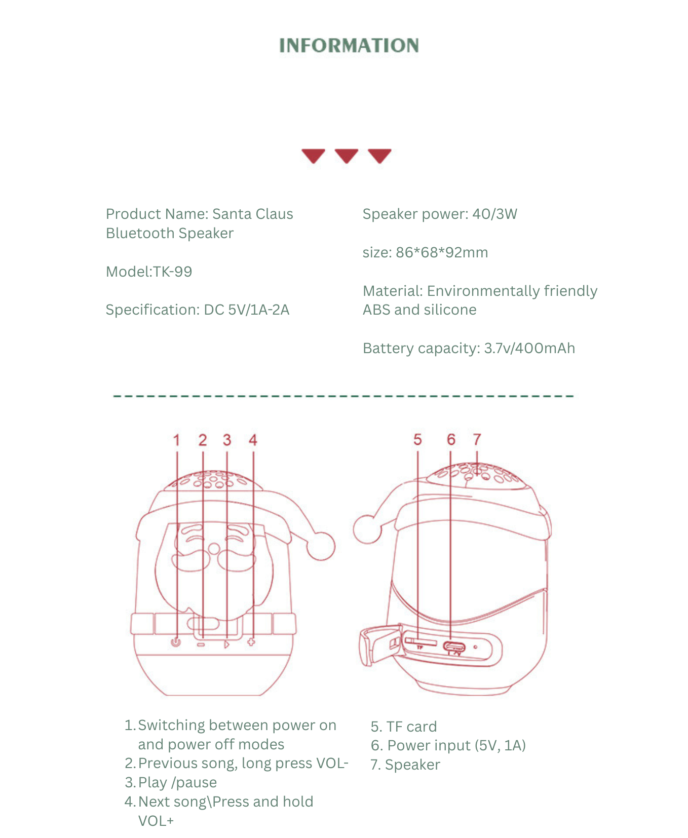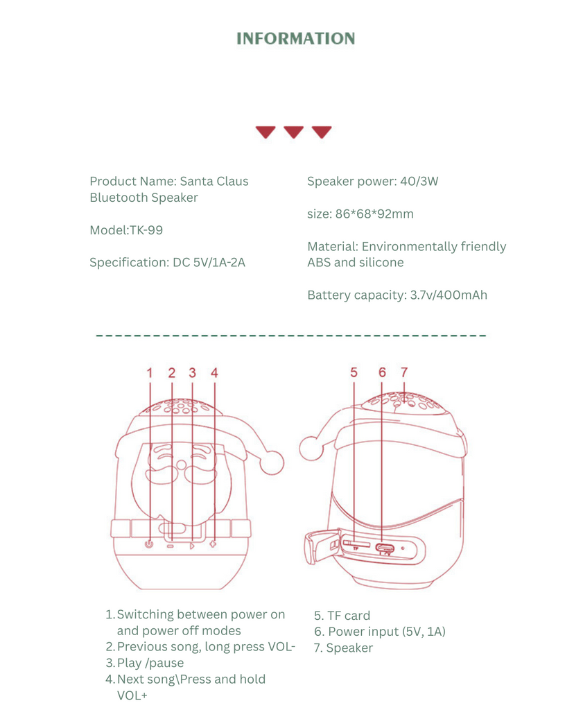 Cute Santa-shaped mini speaker with Bluetooth, TF card, and plug-in support. Portable, waterproof, and perfect for Christmas vibes anywhere.