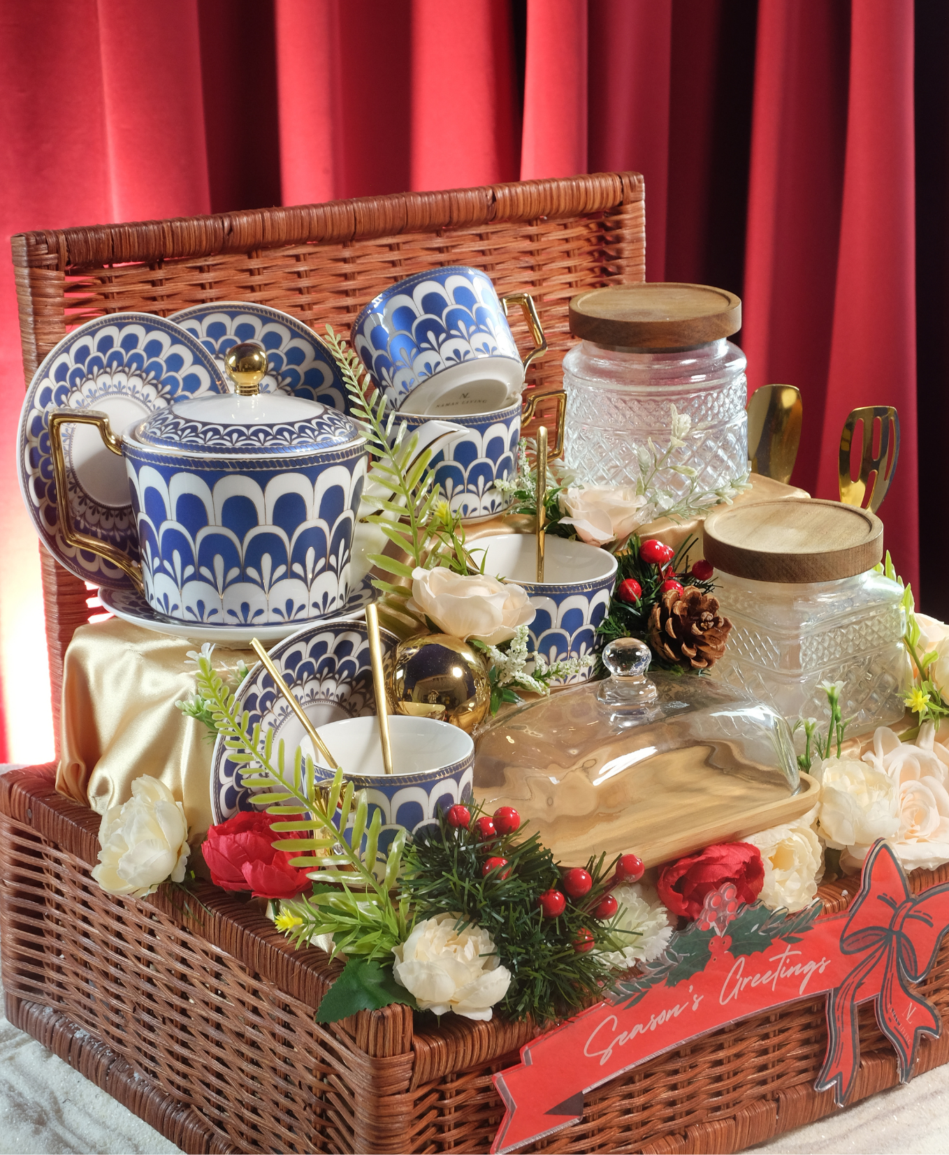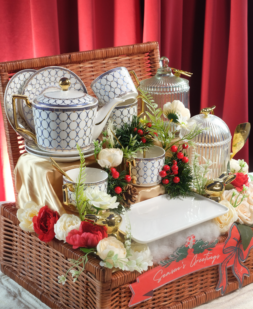 13 Pcs Premium Porcelain Malika Tea Set ( available in blue color and will be send random motif )