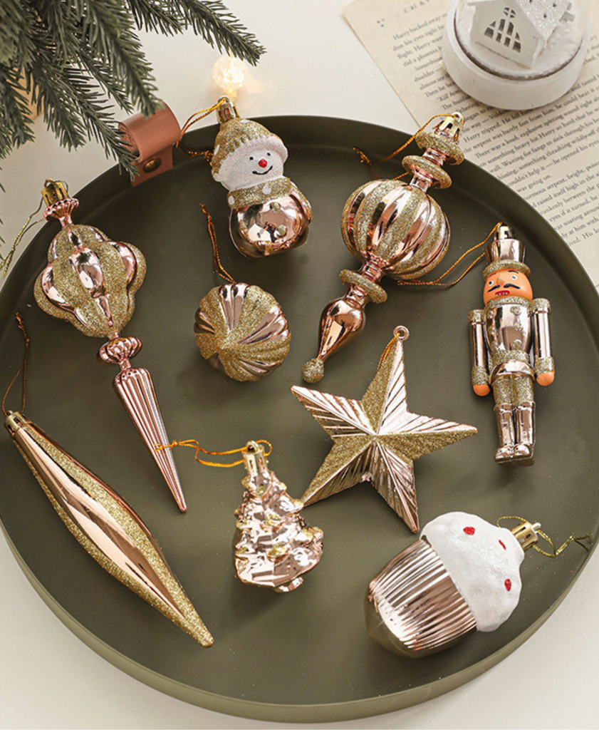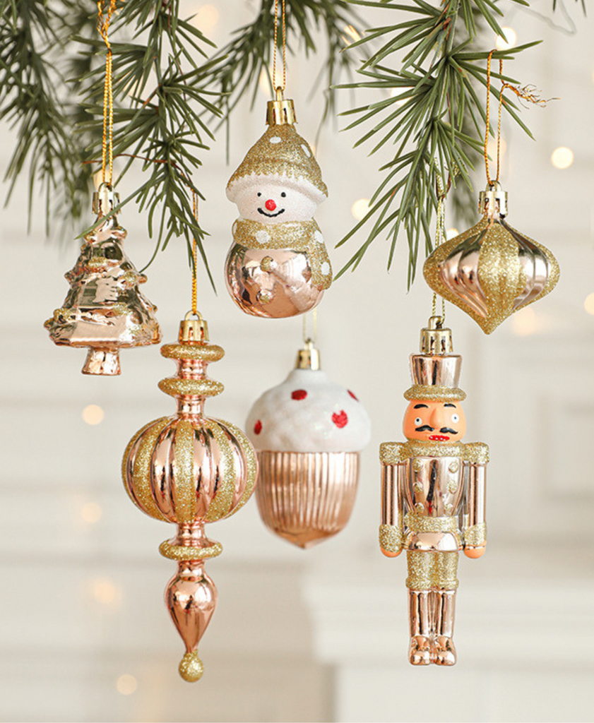 Peach Sparkle Christmas Tree Ornaments Set