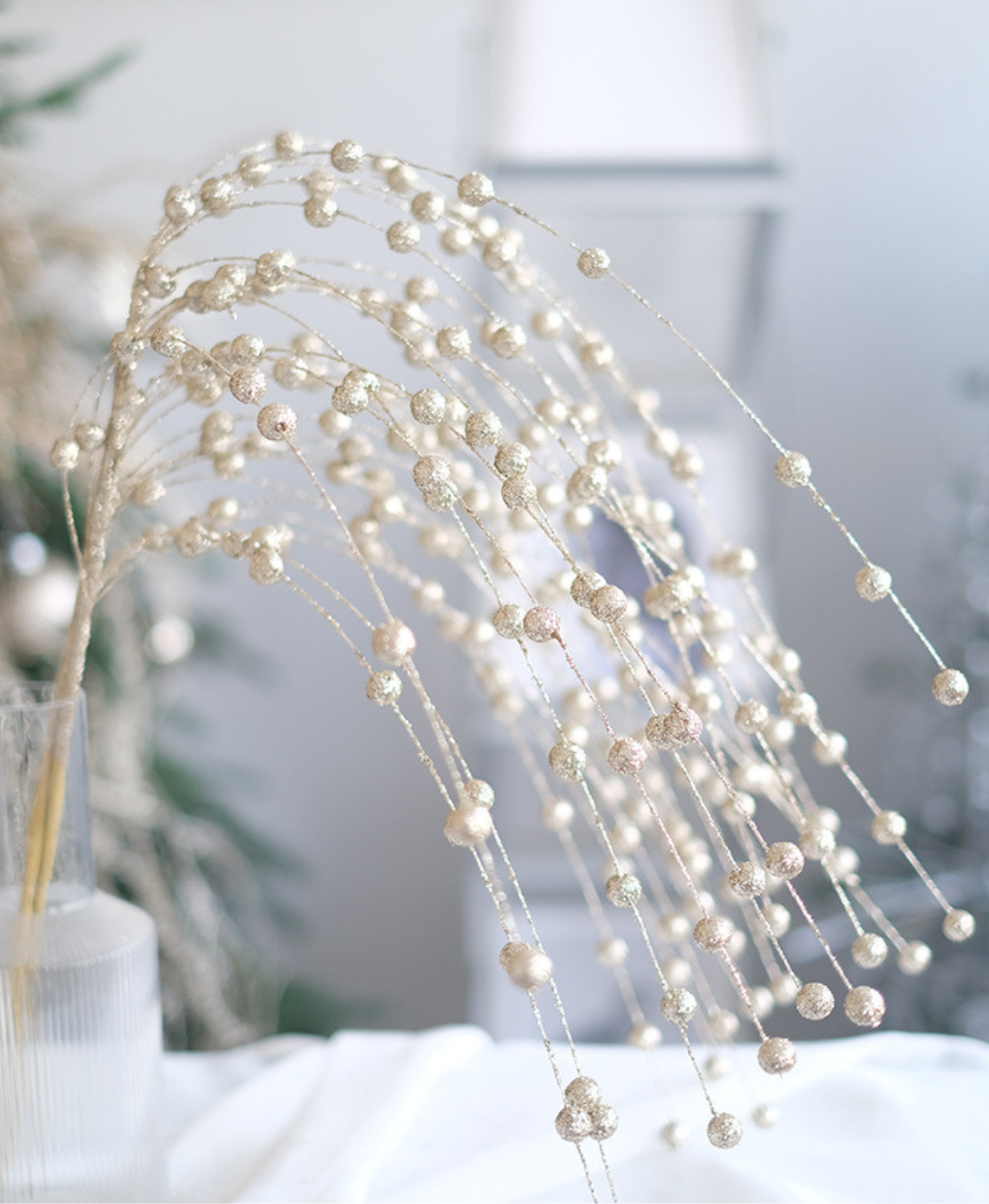 Add a touch of elegance with this Champagne Beaded Spray Ornament — featuring sparkling beads in a graceful, cascading design.