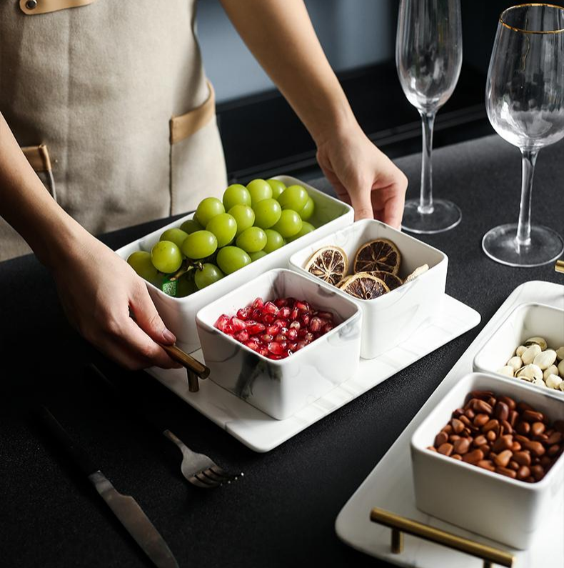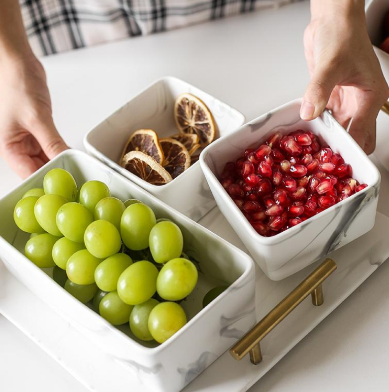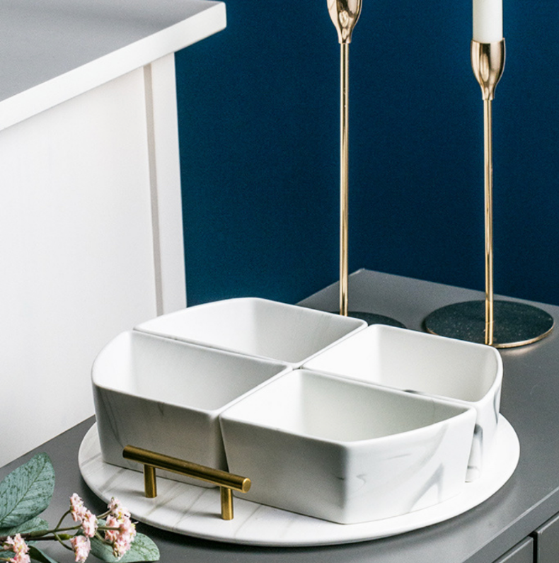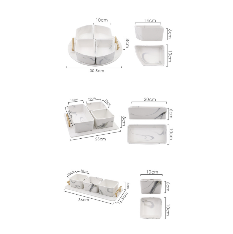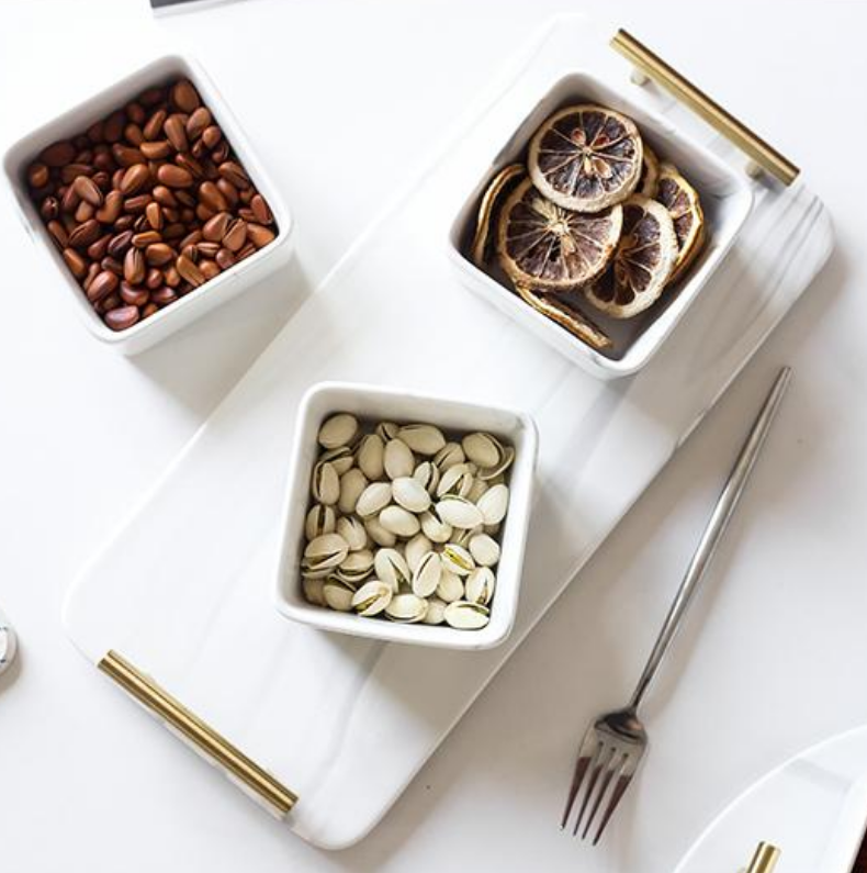 Our marble condiment bowl set definitely owns that wow factor, almost a guarantee to make your guest go gaga. Tray is included and can be used separately to hold your beverages or for bathroom decoration and organizer. Whichever way you want it be!