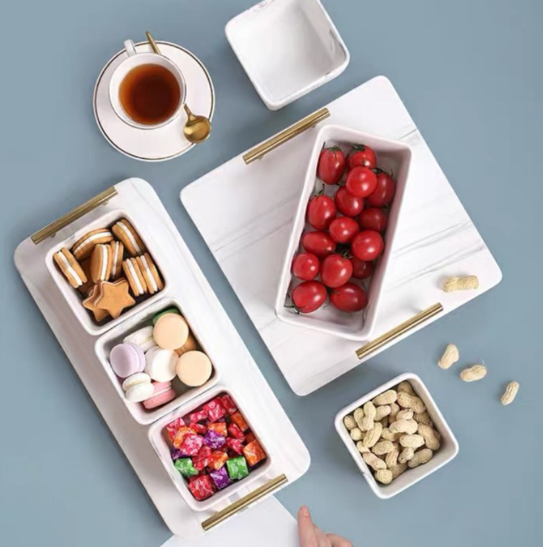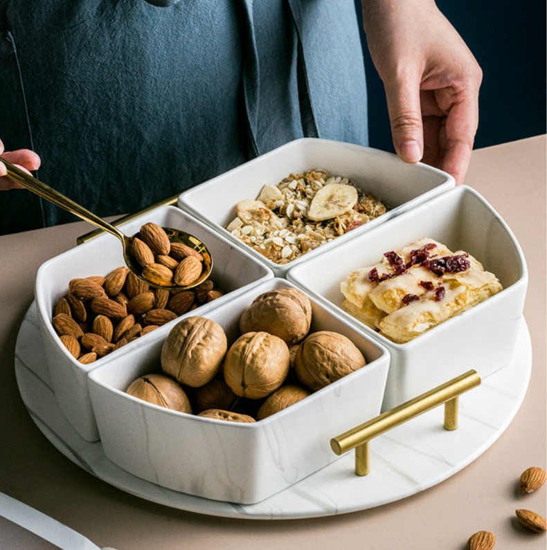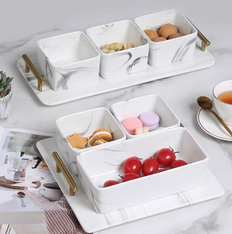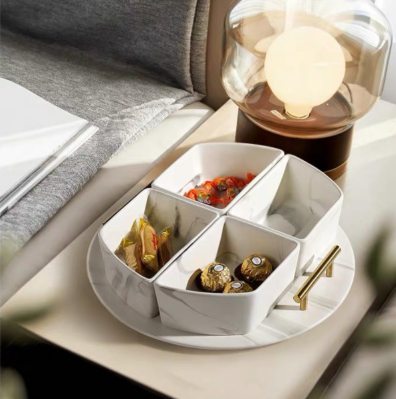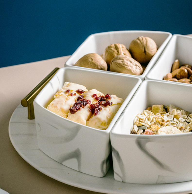 Our marble condiment bowl set definitely owns that wow factor, almost a guarantee to make your guest go gaga. Tray is included and can be used separately to hold your beverages or for bathroom decoration and organizer. Whichever way you want it be!
