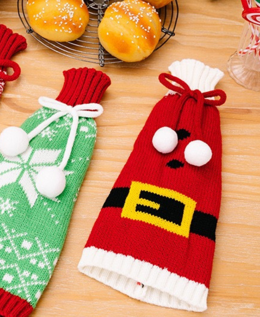 Wrap your bottles in festive warmth with this Red Knit Bottle Cover. Crafted from high-quality knit material, it snugly fits wine and champagne bottles, adding a cozy holiday vibe. Perfect for Christmas celebrations, gift giving, or enhancing your holiday décor.