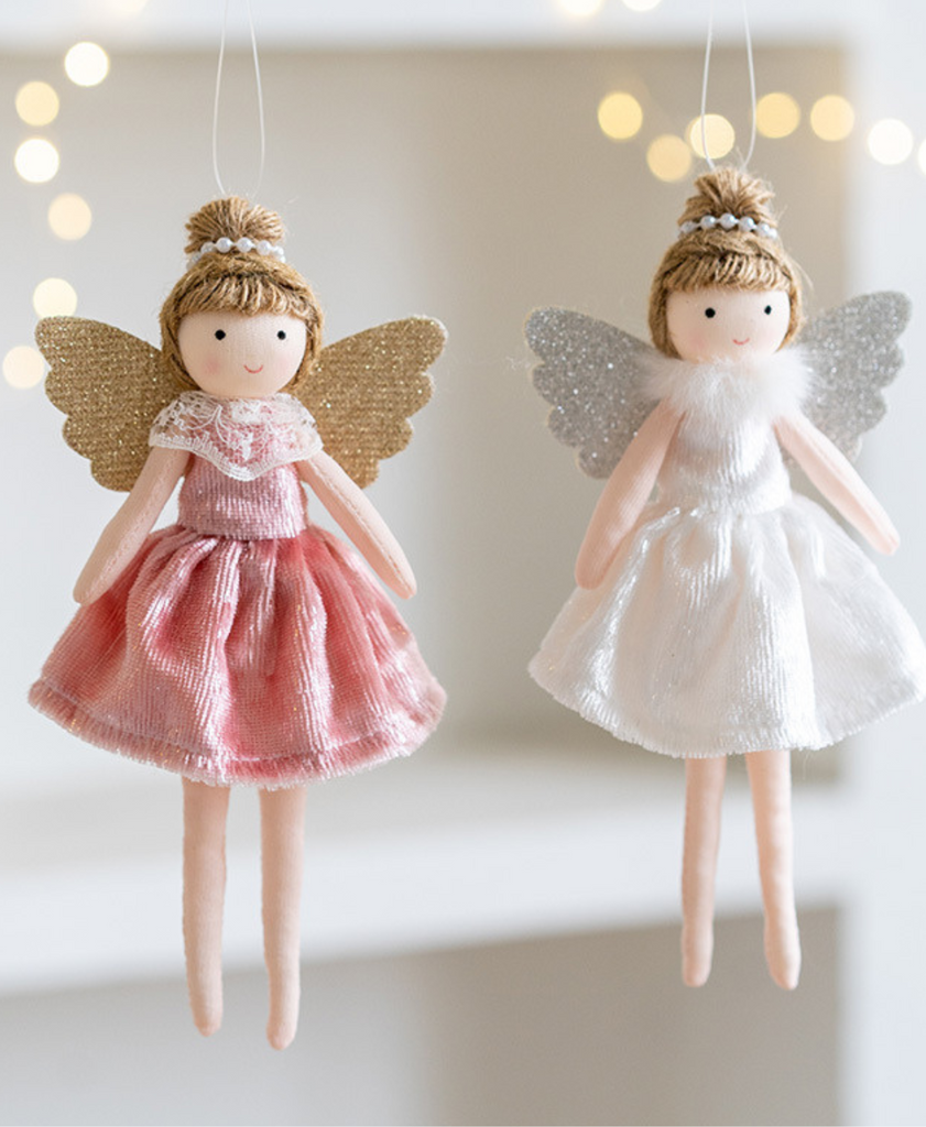 With gentle pink and white tones, this angel ornament radiates a delicate and captivating charm. Its simple yet elegant design is perfect for adding a warm, loving touch to your holiday decor.
