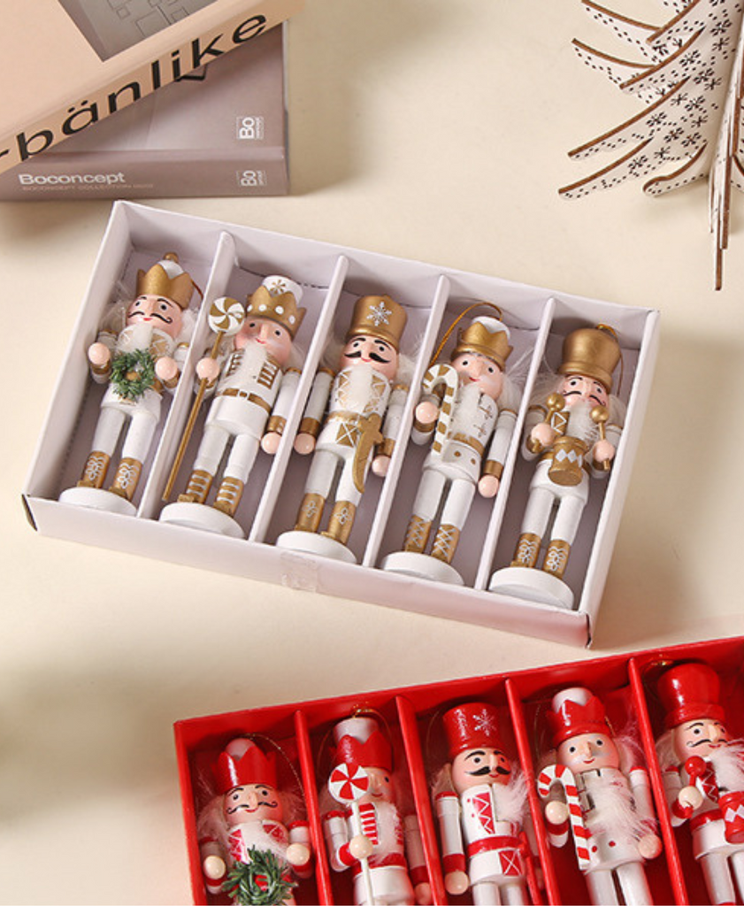 A classic Alpine-style nutcracker set, perfect for adding a warm and traditional touch to your elegant and festive Christmas decor. Set of 5