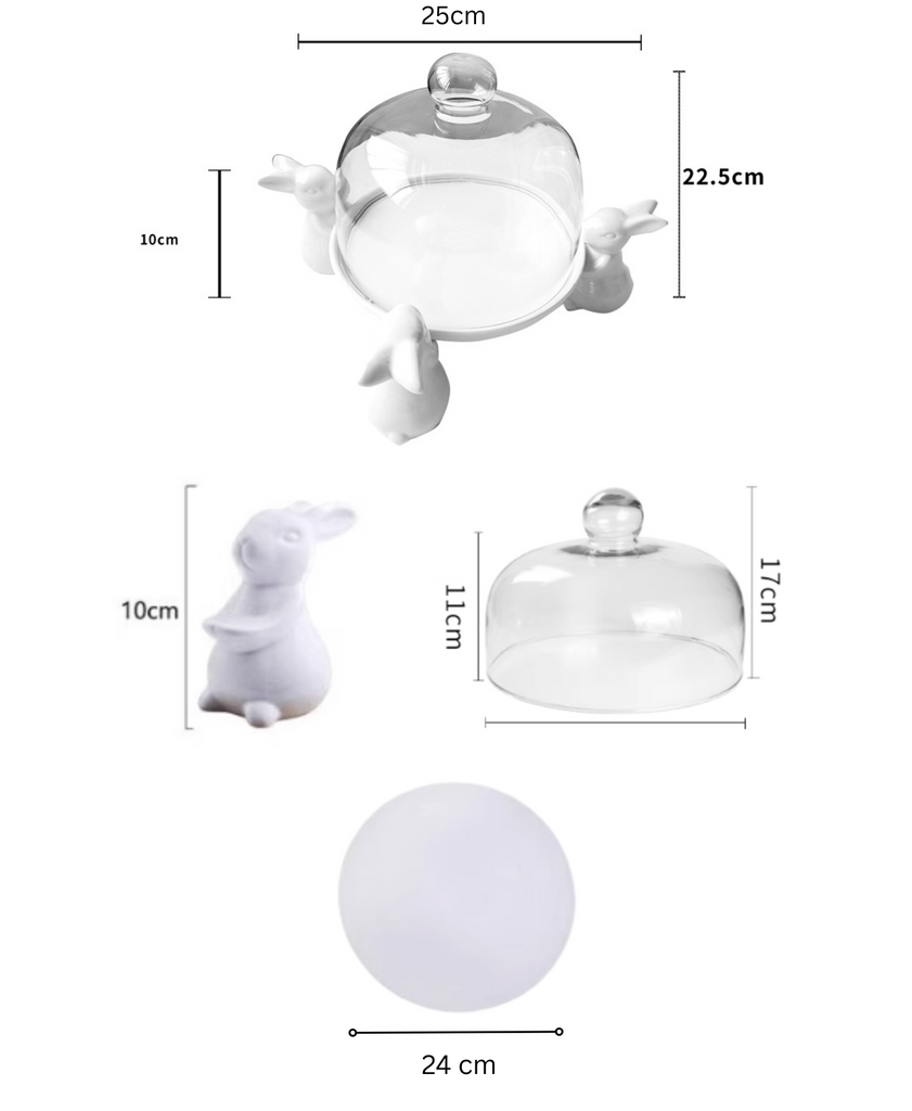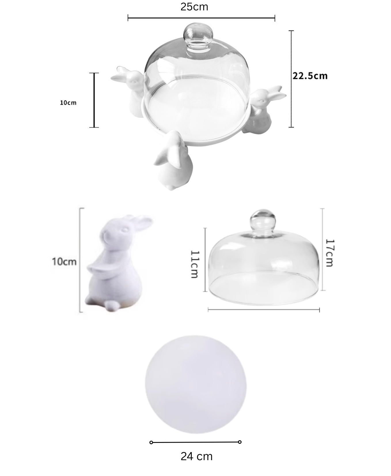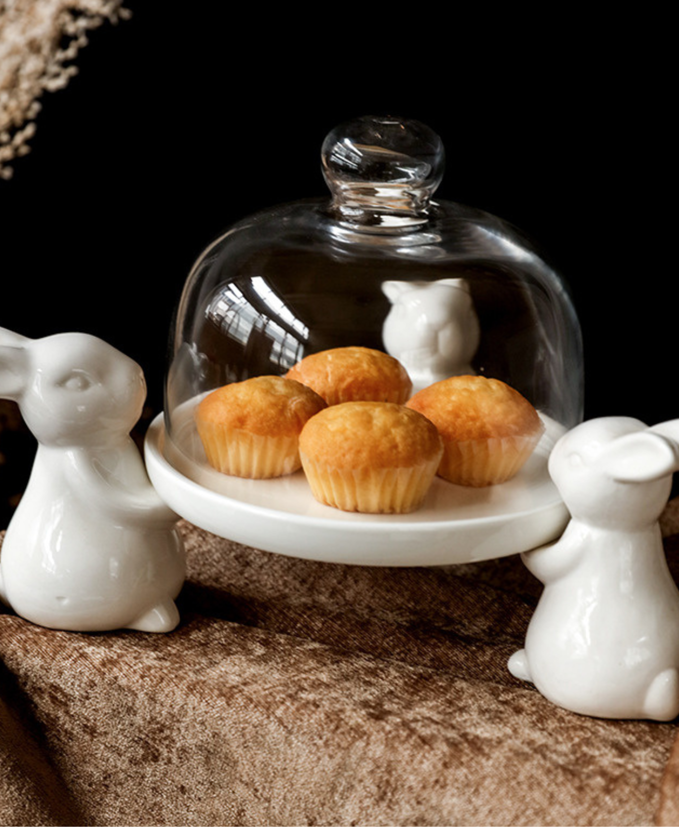 Elevate your dessert presentation with the charming Bunny Cake Stand Plate with Lid. Featuring a clean white design and three adorable bunny-shaped legs, this cake stand adds a playful yet elegant touch to any occasion. The included lid keeps your treats fresh and beautifully displayed.