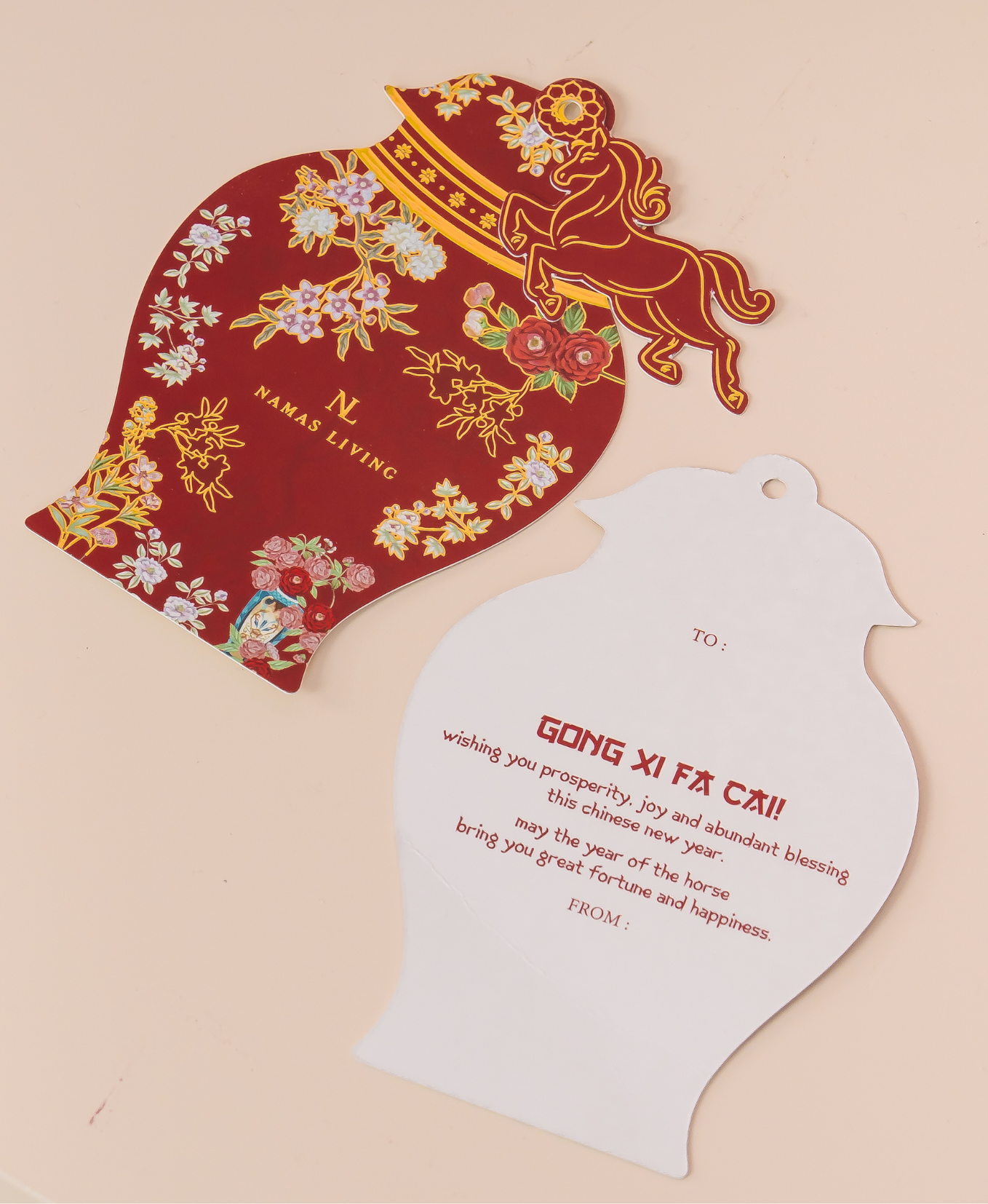 1 Greeting card, ribbon, tassel, hang tag and spunbond bag