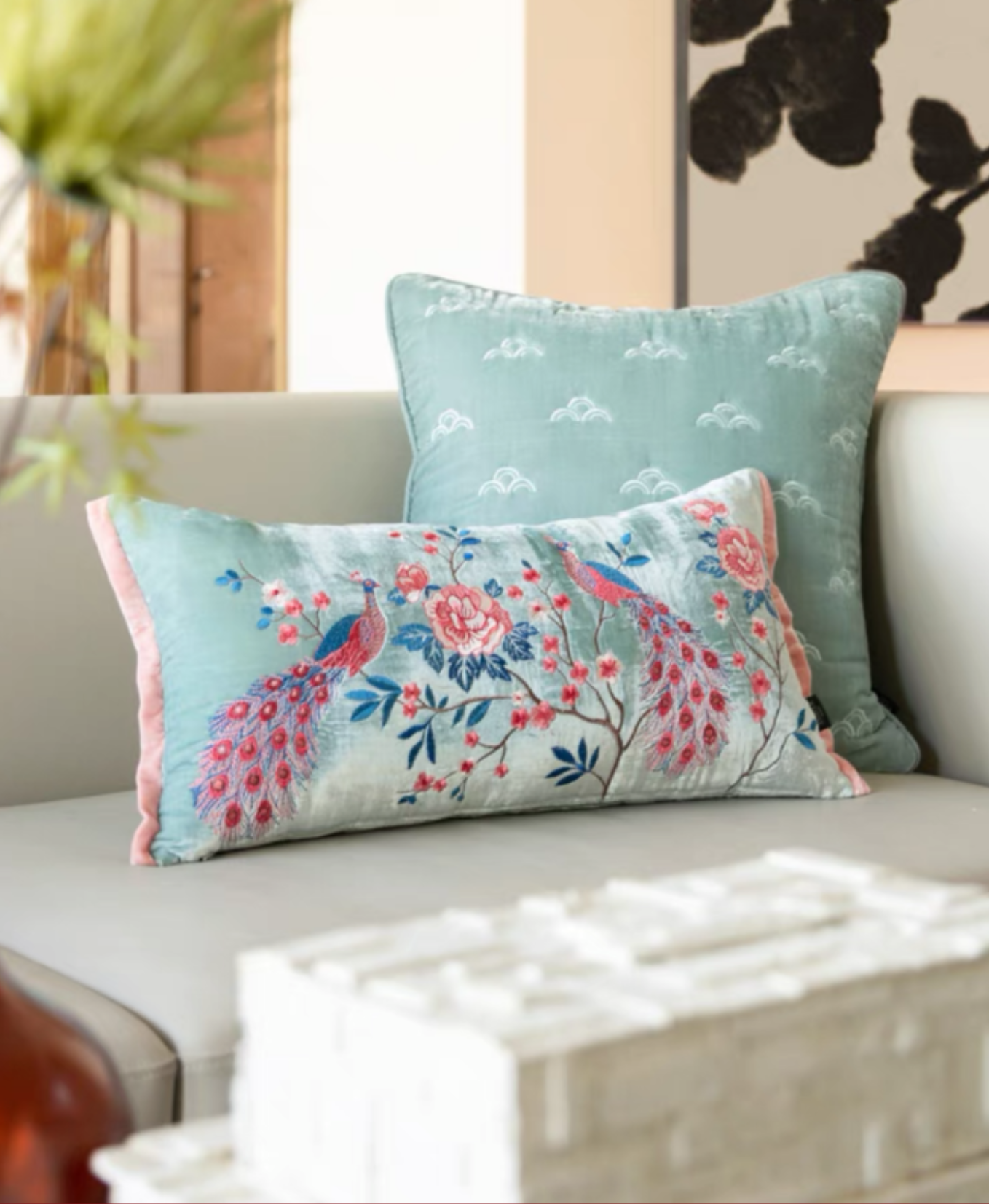 Chinoiserie Aqua Blue Peacock Cushion Pillow