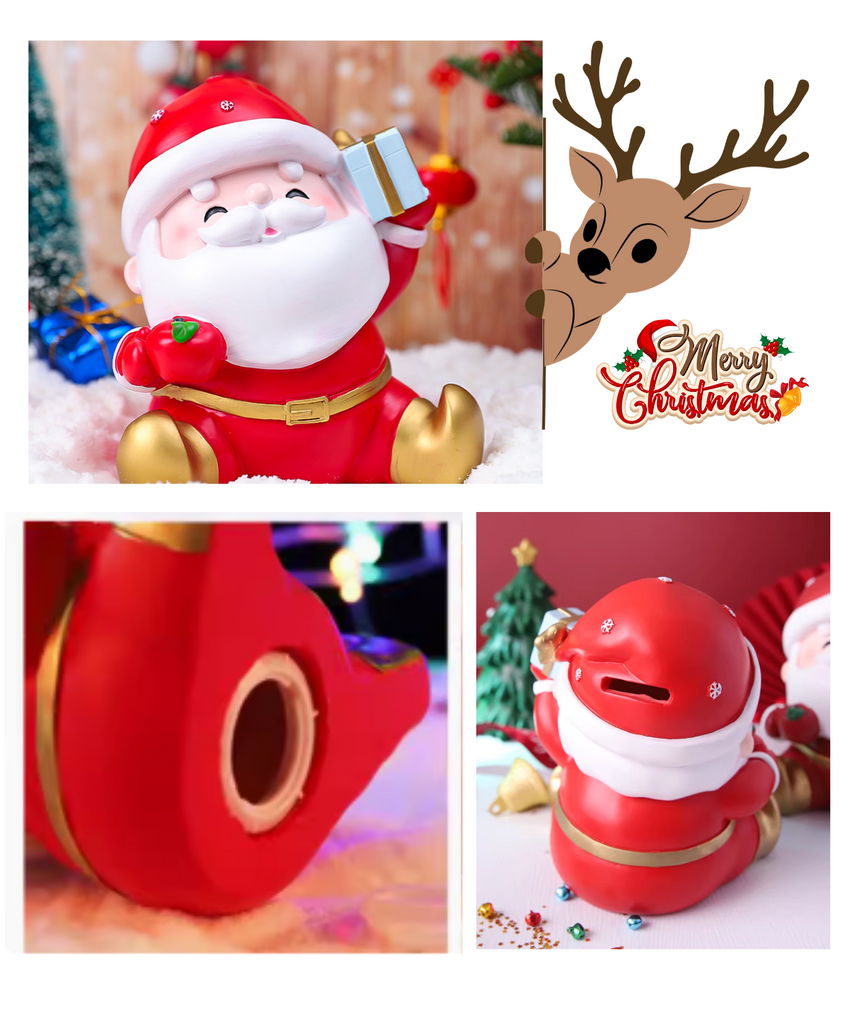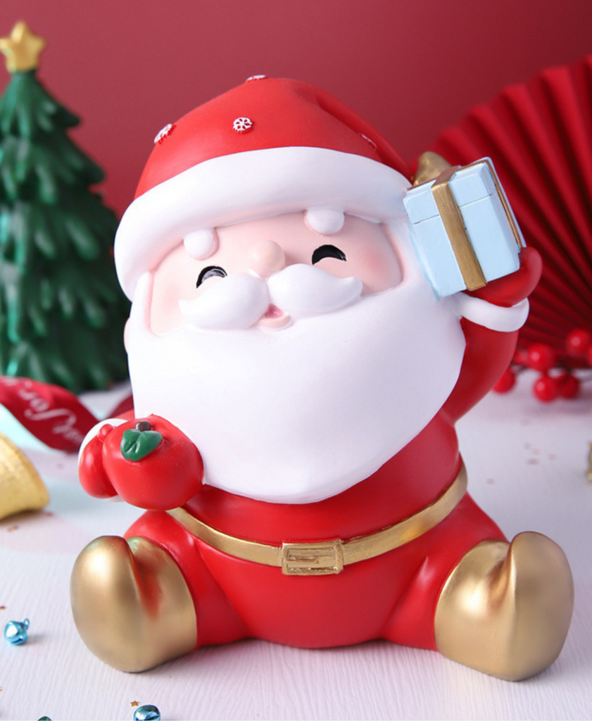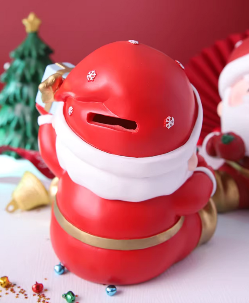 Cute and chubby Santa piggy bank made of durable resin. Perfect for saving coins while adding a festive touch to your Christmas decor.