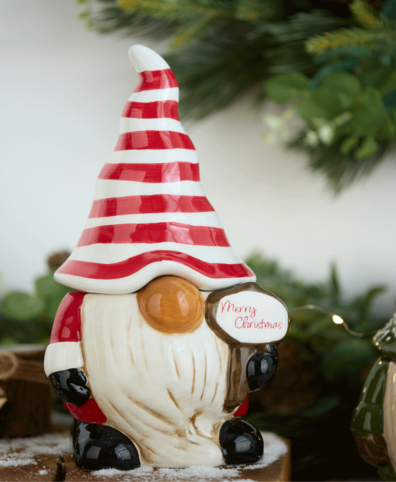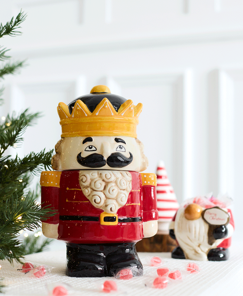 The Magical Guardian Storage Jar is made of quality ceramic, perfect for storing candies or as a cute decoration. Its colorful design with gnome and nutcracker characters brings warm, festive vibes to any space.