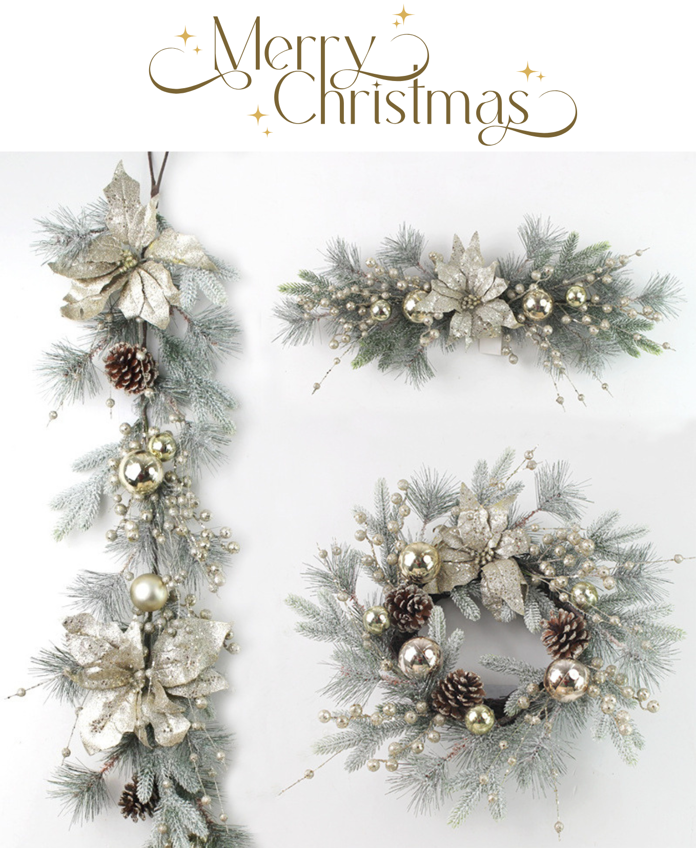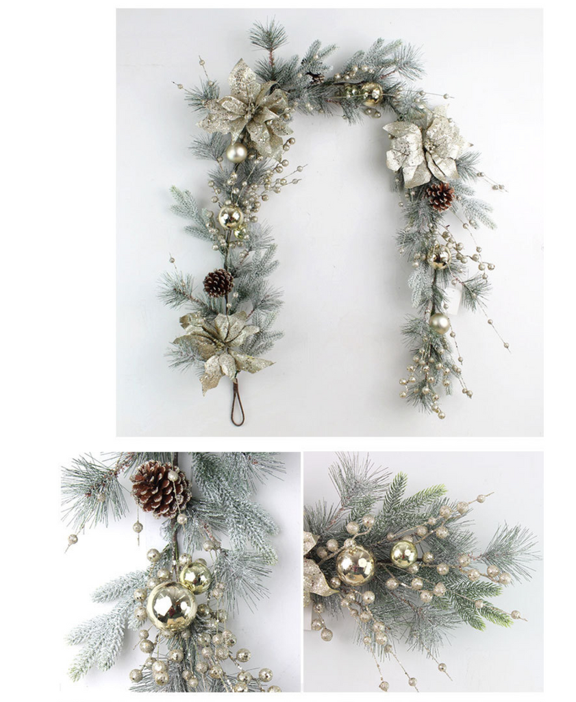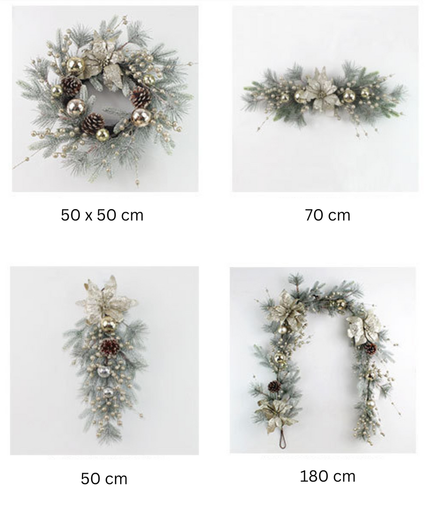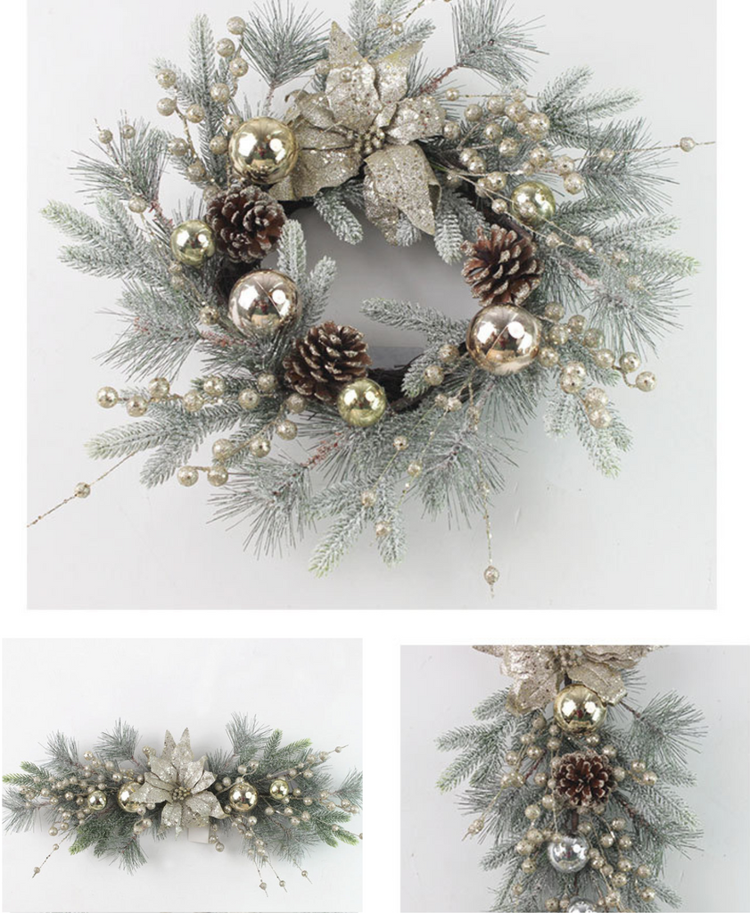 Minted Grace Holiday Wreath features fresh mint tones, luxurious gold accents, and elegant white hues. The perfect decoration to create a graceful and warm holiday atmosphere in your home.