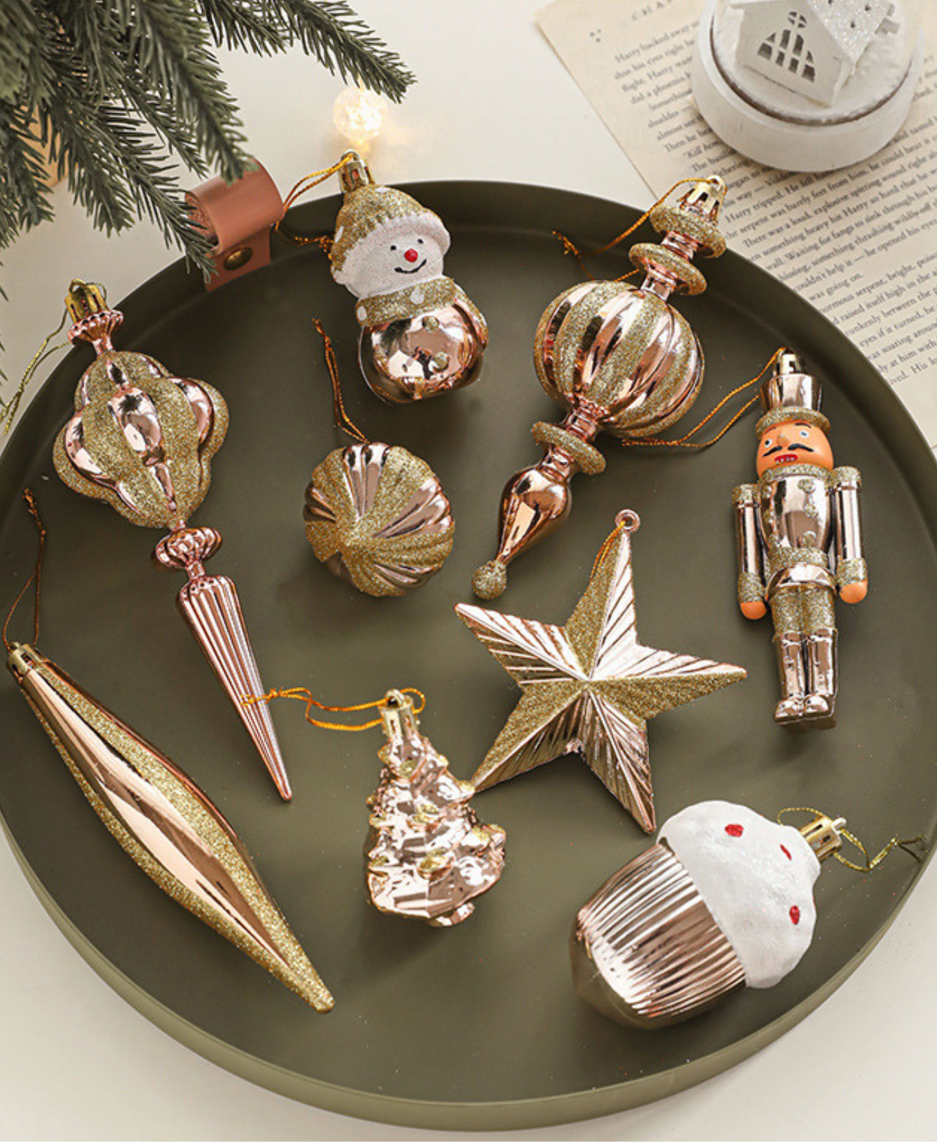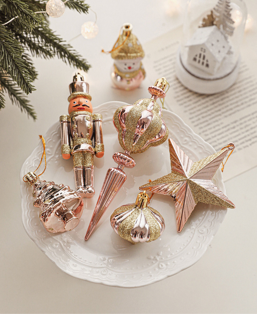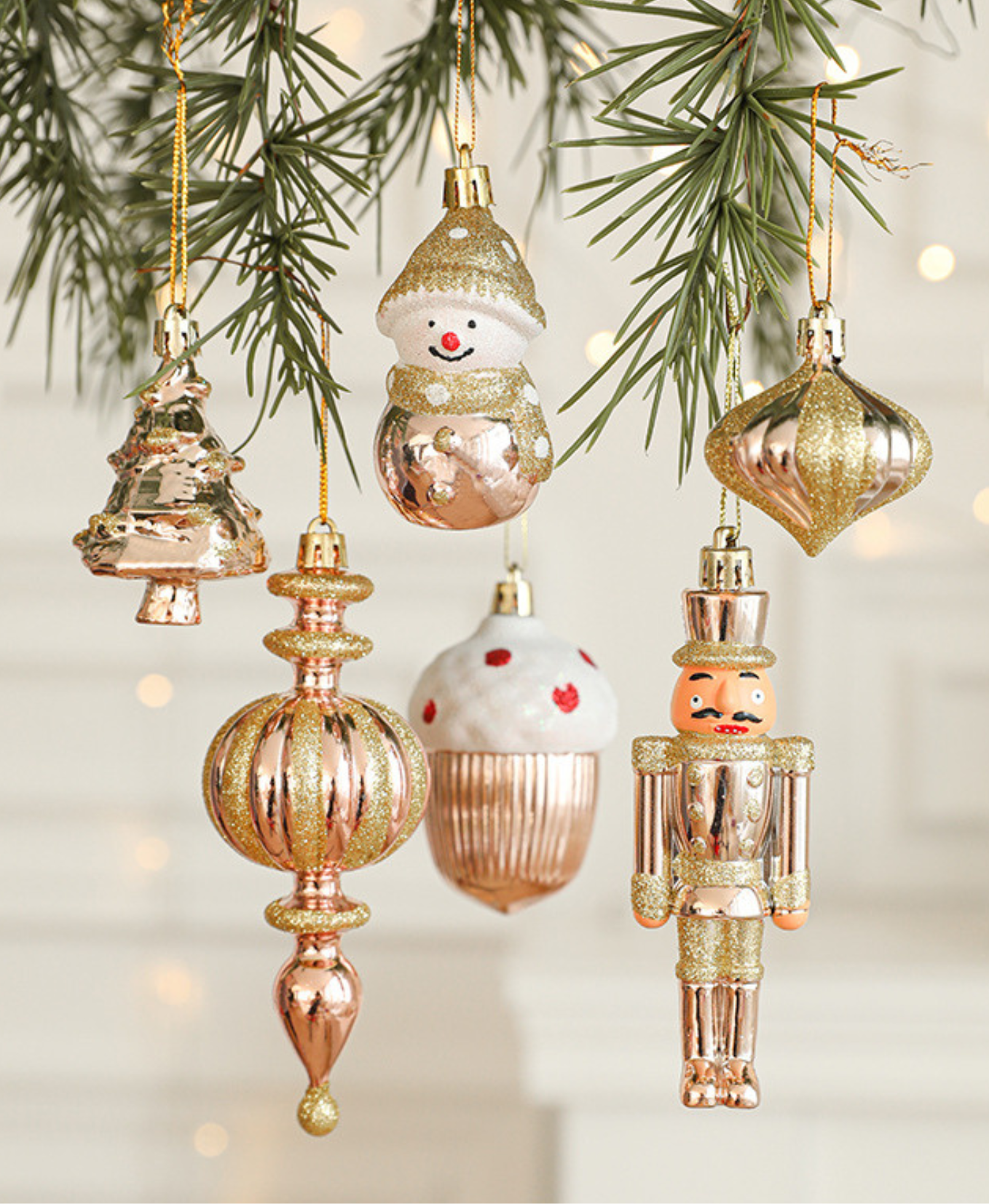 Bring a warm, festive glow to your holiday decor with these shimmering peach ornaments, perfect for adding a touch of elegance to your tree.