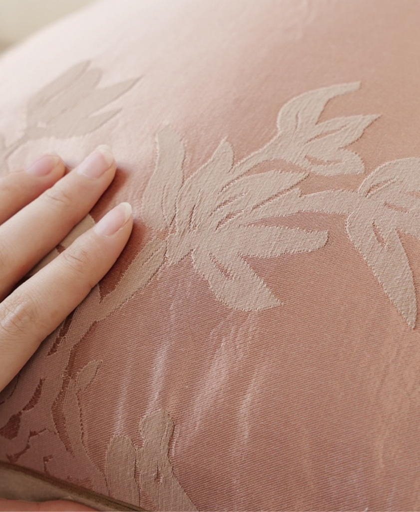 Soft pink pillow cover featuring delicate embroidered details. Perfect for adding a subtle touch of elegance to your sofa or bedroom.