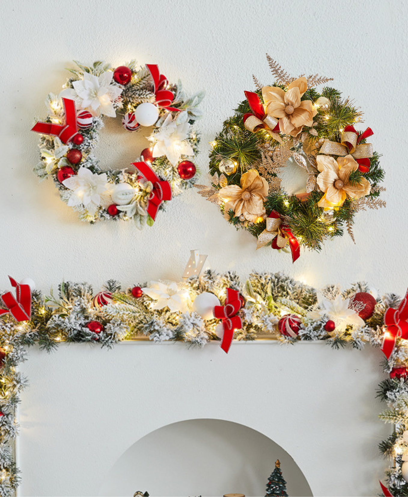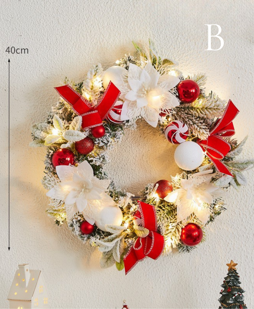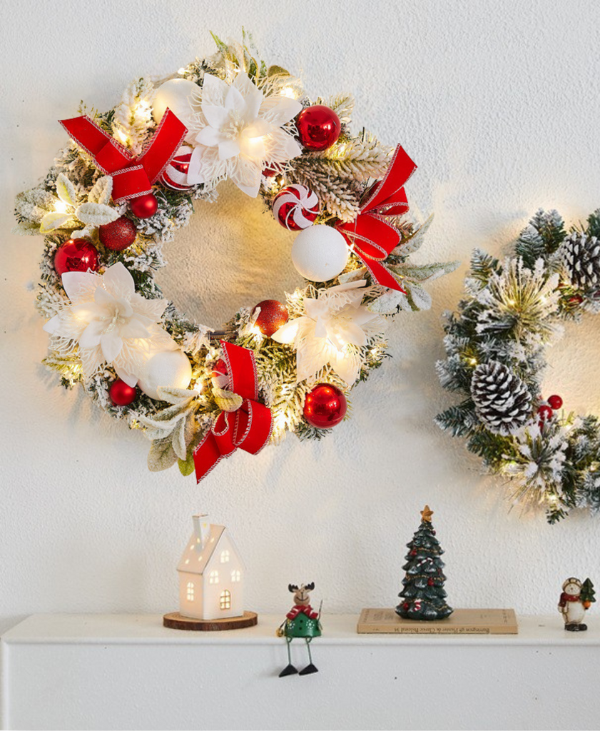 Crafted to create a festive statement, each wreath blends rich textures and delicate blooms to bring a refined charm to your celebrations. Perfect for doors, walls, or grand displays.
