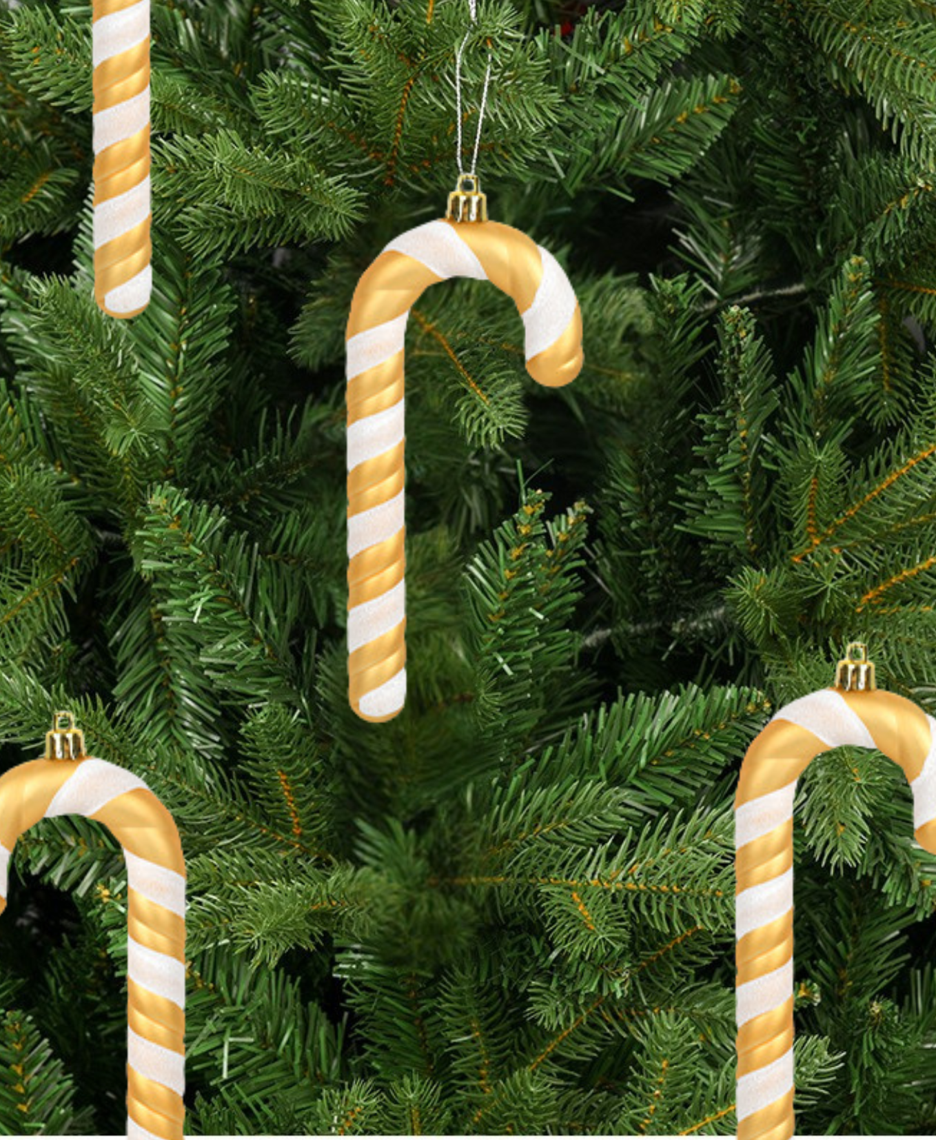 Enhance your holiday decor with this exquisite Gold Christmas Decoration, designed in the shape of lollipops and candy canes to add a touch of whimsy to your festivities. Crafted with shimmering gold hues, these decorations sparkle and shine, creating a festive ambiance in any space. Hang them on your Christmas tree or scatter them around your home to spread joy and cheer throughout the season.