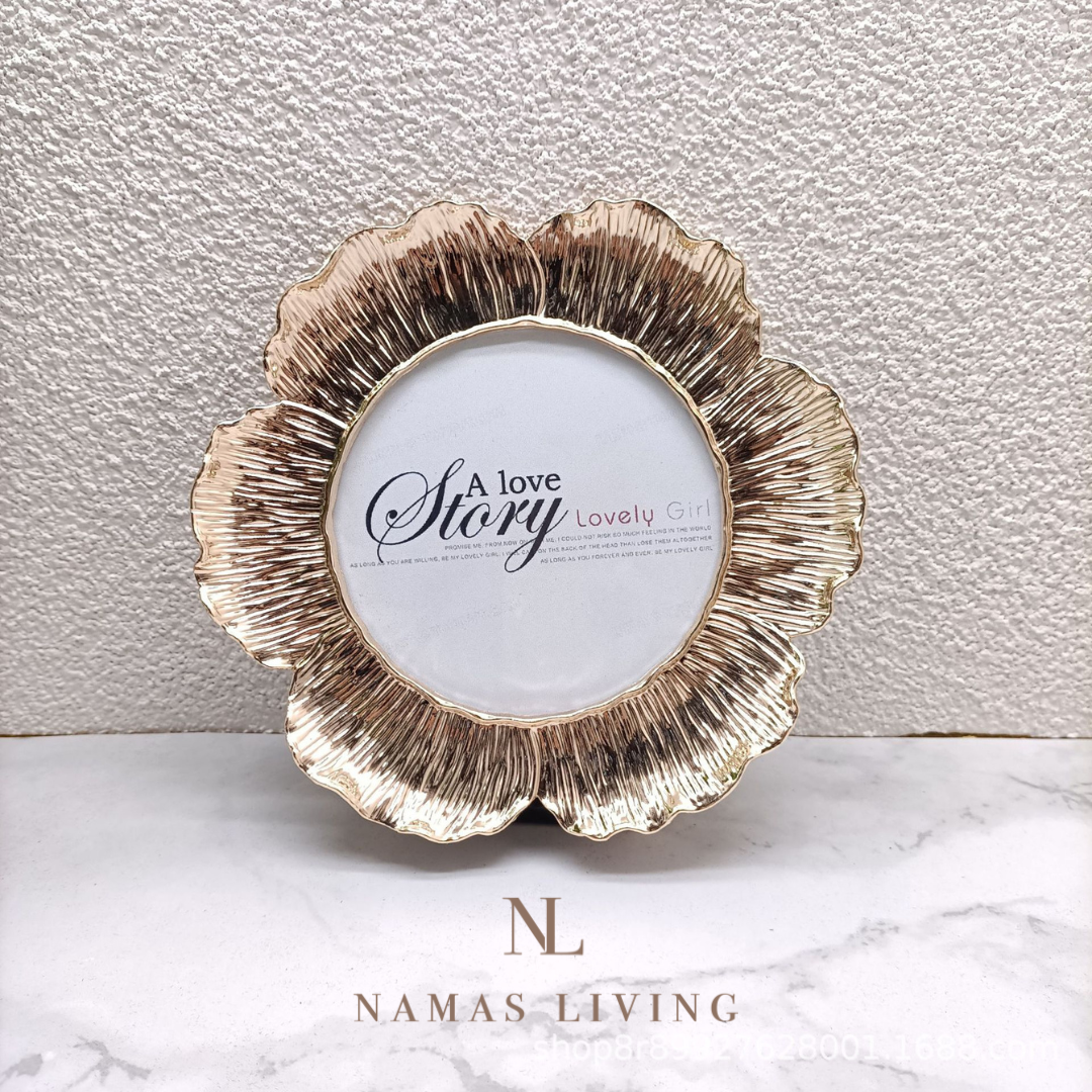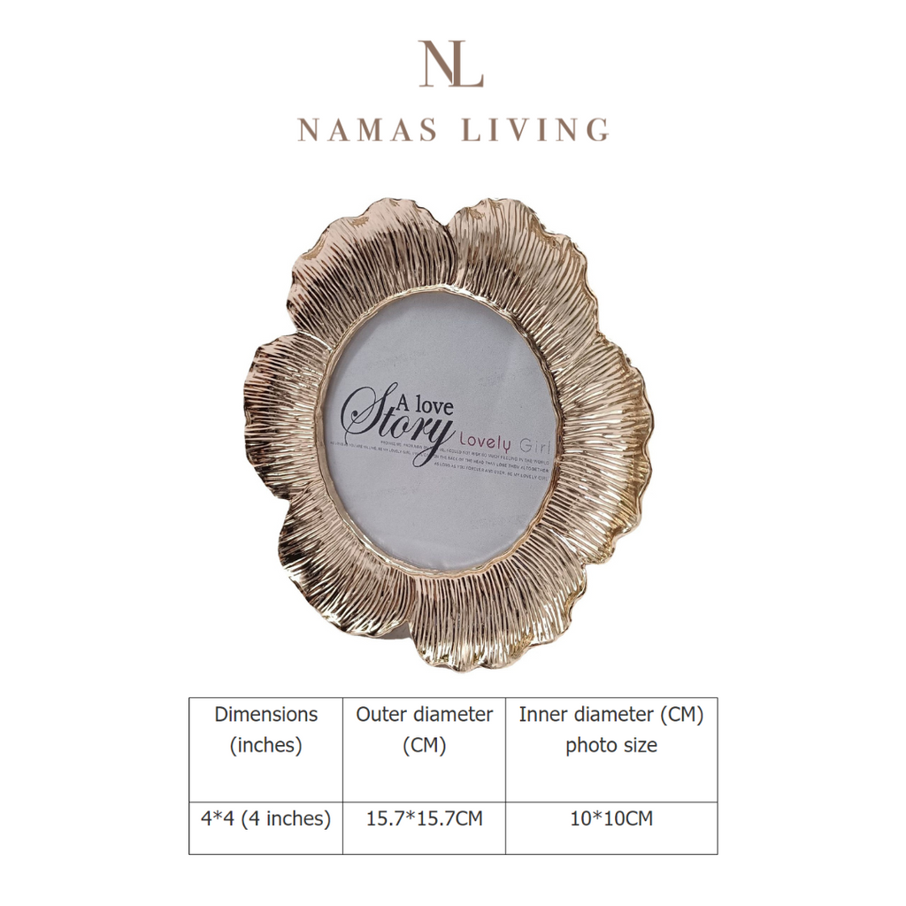 Transform your space with the Peony Petal Picture Frame- (Gold color), where simplicity meets sophistication. Adorned with the graceful allure of peony petals, this frame effortlessly enhances soft décor, infusing your home with timeless charm. Elevate your cherished memories in style and let this exquisite frame become the centerpiece of your room's ambiance, radiating elegance and grace.