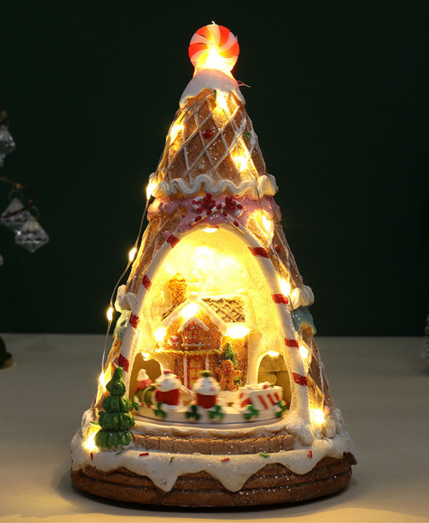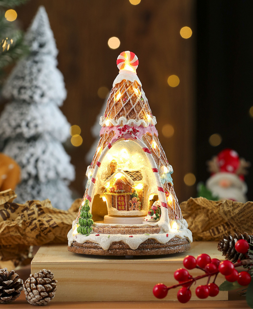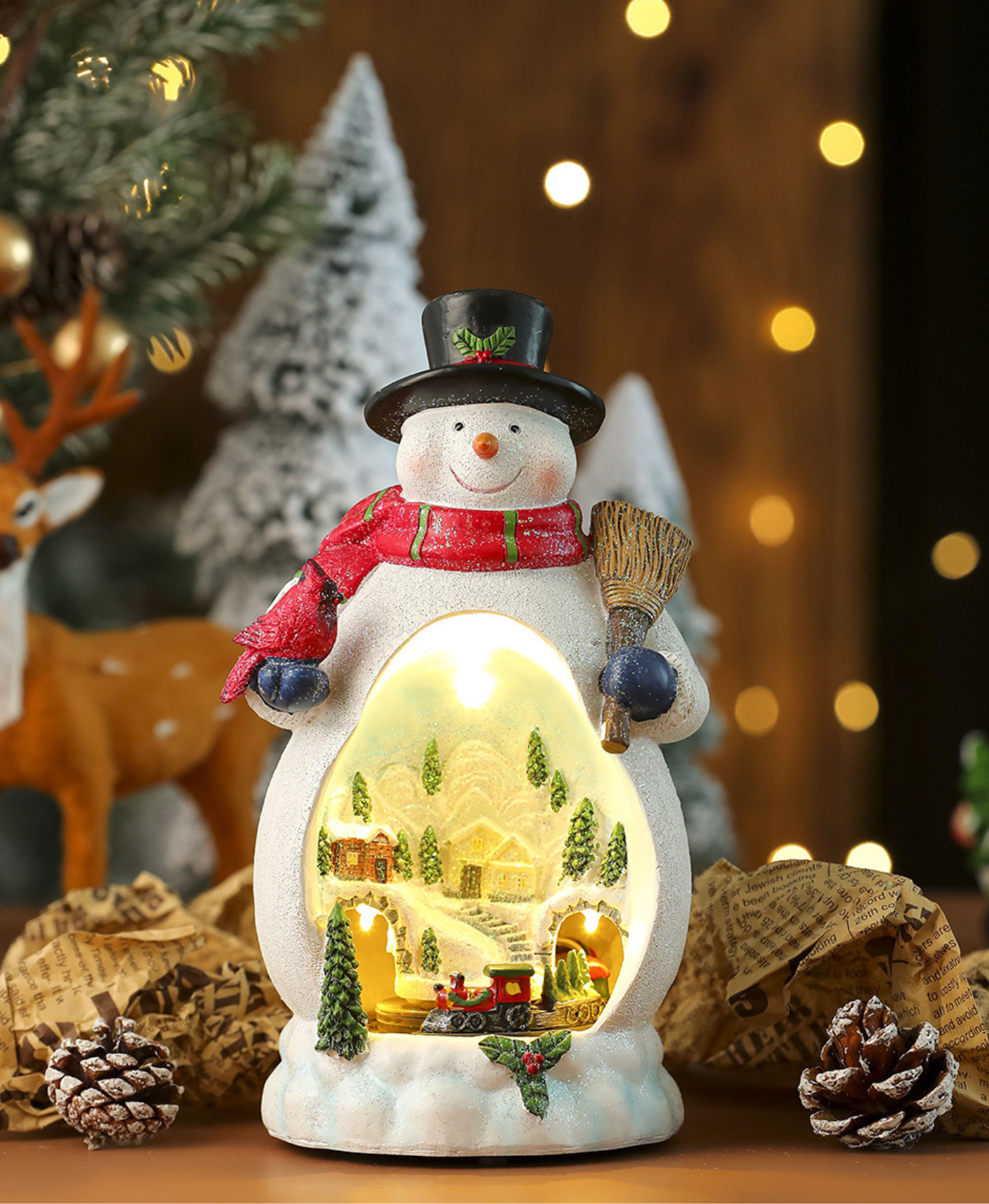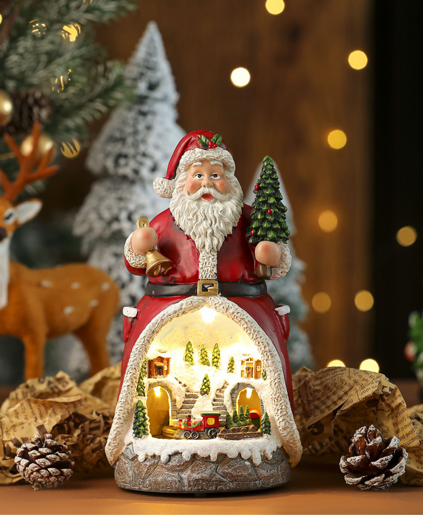 A charming handcrafted scene where a festive train circles through a snowy village—glowing with warm lights and a touch of music. Perfect as a holiday centerpiece or a heartfelt gift.